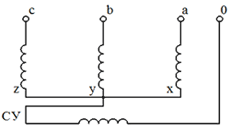 Схема подсоединения обмотки симметрирующего устройства (СУ) к обмоткам НН: