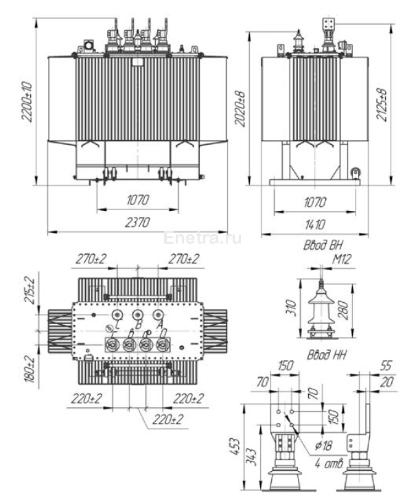 ТМГ-СЭЩ - трансформатор герметичный без расширителя. Регулировка напряжения без нагрузки.