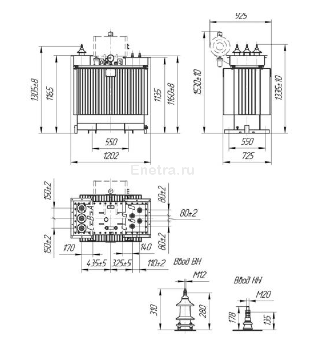 ТМГФ-СЭЩ - трансформатор герметичный без расширителя, с фланцами на крышке для бокового присоединения шин. Регулировка напряжения без нагрузки.