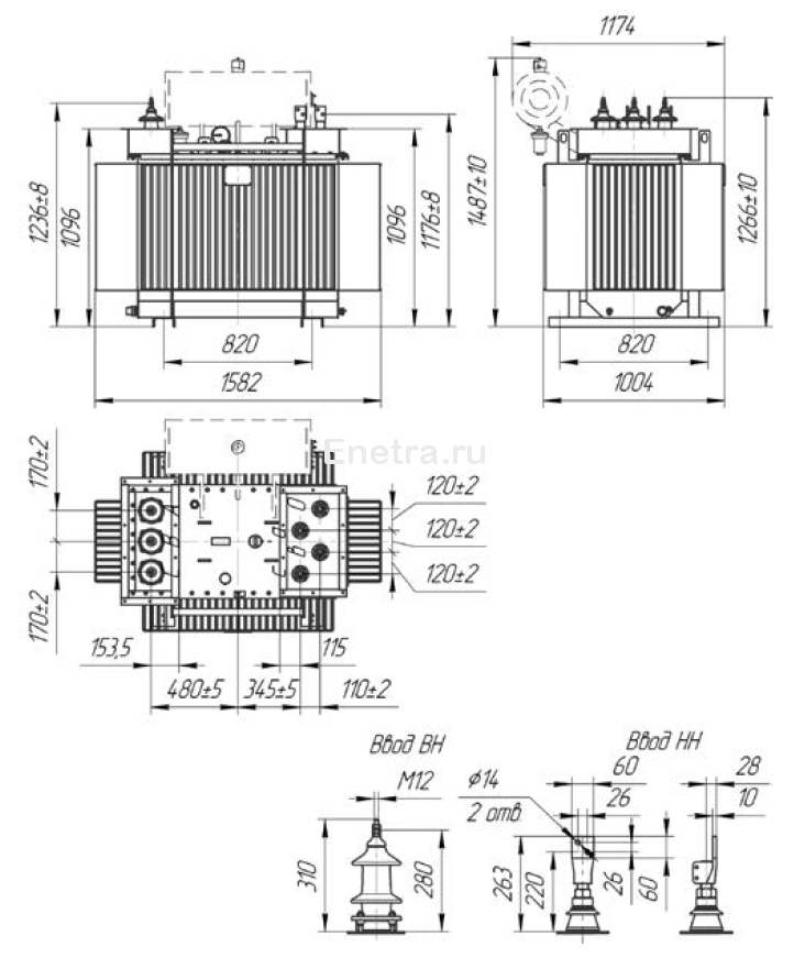 ТМГФ-СЭЩ - трансформатор герметичный без расширителя, с фланцами на крышке для бокового присоединения шин. Регулировка напряжения без нагрузки.